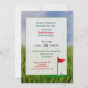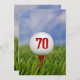 Bola de golfe branca sobre a teta vermelha na grama verde para a festa do 70. Todo o texto é editável.