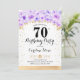 convite de aniversário 70. Design elegante em ouro brilhante com sotaque floral. Convide cartão com fonte de script e confetti. Púrpura e branca pastel. Perfeito para uma comemoração de na moda 30 dias. Envie-me uma mensagem se precisar de idade personalizada.