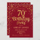 Convite de aniversário 70. Design elegante em vermelho e ouro brilhante. Possui fonte de script na moda e confetti. Envie-me uma mensagem se precisar de idade personalizada.