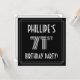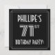 A frente deste luxuoso design de placa de convite de aniversário 71 apresenta um nome personalizado, um intrincado deco visual inspirado número "71ruas", a mensagem "FESTA DE ANIVERSÁRIO!" e um padrão de borda composto por linhas. Por padrão, há um fundo de cor preta na parte frontal, mas ele pode ser personalizado para uma cor diferente se desejar. A parte traseira apresenta detalhes personalizados sobre o evento, como data, hora, local e quaisquer outras informações importantes. Convites sofisticados, na moda, personalizáveis como estes podem ser usados para convidar hóspedes para uma festa de aniversário que está sendo realizada para honrar o aniversário de 71ruas de alguém. [~Z0000615]