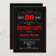 Convite de aniversário 80. Design preto, vermelho e branco legante com padrão de quadro de referência e fonte de script. Saúde para 80 anos! Envie-me uma mensagem se precisar de mais personalização.