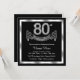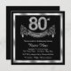 Convite de aniversário preto e prateado elegante com números de diamante e faixa em fundo prateado e preto. Este belo convite de aniversário 80 preto e prateado é facilmente personalizado para o seu evento. Você pode alterar a cor de fundo. Esta design surpreendente funciona bem para um homem ou uma mulher. Este é um design impresso sem diamantes reais, prata, brilho, etc.