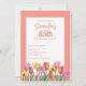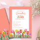 Linda ilustração aquosa de tulipas laranja, rosa e amarelas sobre fundo branco para festas de aniversário com primavera. Personalize o cartão de convite de aniversário para qualquer aniversário de etapa e pessoa.