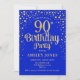 Convite de aniversário 90. Design elegante em azul real e ouro brilhante falso. Possui fonte de script na moda e confetti. Envie-me uma mensagem se precisar de idade personalizada.