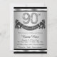 90 de prata com números de diamante e banner de aniversário feliz em um fundo prateado e preto. Este belo convite de aniversário prateado é facilmente personalizado para o seu evento. Você pode alterar a cor de fundo. Esta design surpreendente funciona bem para um homem ou uma mulher. Este é um design impresso sem diamantes reais, prata, brilho, etc.