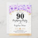 convite de aniversário 90. Design elegante em ouro brilhante com sotaque floral. Convide cartão com fonte de script e confetti. Púrpura e branca pastel. Perfeito para uma comemoração de na moda 30 dias. Envie-me uma mensagem se precisar de idade personalizada.