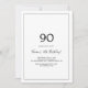Este convite de aniversário 90 minimalista é perfeito para uma festa de aniversário simples. A design romântica moderna apresenta a tipografia clássica, em preto e branco, emparelhada com uma caligrafia rústica, mas elegante, com estilo voltado para a mão. Personalizável em qualquer cor. Mantenha o design simples e elegante, como está, ou personalize-o adicionando seus próprios gráficos e trabalhos de arte.