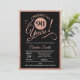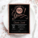90 convite de aniversário para mulheres. Cartão de convite elegante a preto com folha de ouro de rosa brilhante falso. Apresenta a fonte do script de tipografia. Saúde para 90 anos! Pode ser personalizado em qualquer ano. Perfeito para uma celebração de um dia adulto.