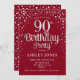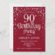 Convite de aniversário 90. Design elegante em vermelho escuro e prata brilhante fraca. Possui fonte de script na moda e confetti. Envie-me uma mensagem se precisar de idade personalizada.