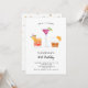 Placa branca de convite de aniversário para adultos com ilustração de cocktails coloridos.
