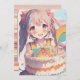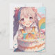 Garota anime segurando um bolo de aniversário, convites de festas de aniversários de menina pastel bonito.