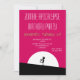 Um convite para festa de aniversário de apocalipse zombie. Esquema de cor rosa e preto a negrito vibrante. Uma legal silhueta de zumbis com braços estendidos na busca por cérebros. Uma grande lua branca ilumina por trás.