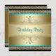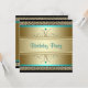 Convite de festa de aniversário azul teal e dourado lindo. Este convite de festa jade e dourado é facilmente personalizado para o seu evento.