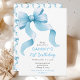 Este convite de aniversário giro e caprichoso apresenta um arco de coquete azul-aquarela. O texto combina o script manuscrito e as fontes serif para uma aparência na moda e moderna.
