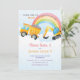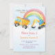 Arco-íris bonito e convite de aniversário de construção para festa de aniversário de junção de garotinha.