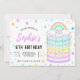 Este convite de aniversário arco-íris é ideal para uma festa de aniversário 6 para meninas. Ele apresenta um bolo de aniversário de trepadeira com arco-íris com gelo e borrifas em cima cercado por estrelas e confetti. No verso há um padrão de verificação do arco-íris correspondente. Personalize o texto para ajustado de sua ocasião especial. Veja toda a coleção correspondente.