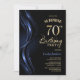 Este moderno convite de aniversário de 70 surpresa preto e azul dá o tom perfeito para uma festa surpresa. Personalize facilmente seu convite com o nome do convidado de honra, os detalhes da festa e as informações do local em apenas alguns cliques. Você será capaz de criar uma noite cheia de amor, risos e memórias queridas que seus entes queridos irão tesourar para sempre. Você pode escolher entre uma variedade de tipos de papel e estilos de canto para criar um convite exclusivo que se adeque ao seu gosto. Além disso, você também tem a opção de baixar o convite se preferir uma versão digital.