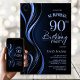 Este moderno convite de aniversário de 90 surpresa preto e azul dá o tom perfeito para uma festa surpresa. Personalize facilmente seu convite com o nome do convidado de honra, os detalhes da festa e as informações do local em apenas alguns cliques. Você será capaz de criar uma noite cheia de amor, risos e memórias queridas que seus entes queridos irão tesourar para sempre. Você pode escolher entre uma variedade de tipos de papel e estilos de canto para criar um convite exclusivo que se adeque ao seu gosto. Além disso, você também tem a opção de baixar o convite se preferir uma versão digital.