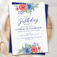 Estes elegantes e modernos convites de aniversário patrióticos apresentam lindas flores de aquarela em tons vermelhos, brancos e azuis, fazer-os a escolha perfeita para o aniversário de 4 de julho ou aniversários militares. A design é patriótica e floral, alcançando um equilíbrio perfeito entre os dois temas. Visite nossa coleção patriótica de aniversário para convites patrióticos, favoritos para festas e suprimentos de festas. COPYRIGHT © 2023 Judy Burrows, Black Dog Art - Todos Os Direitos Reservados. Convite de aniversário Azul Branco Floral Patriótico
