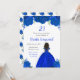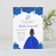 Este convite de aniversário apresenta flores florais azuis reais e brilhantes e uma bela princesa com pele escura e um vestido elegante. Isto é perfeito para uma festa de aniversário.