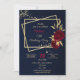 flores românticas elegantes e folhas de ouro em dois retângulos dourados, marinho azul de luxo Os detalhes da brilha são simulados