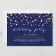 Convites Festa de Aniversário Azul Pontos de Confete Coral