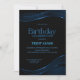 Convide seus amigos e entes queridos para comemorar seu aniversário com este convite de aniversário preto e azul na moda.
