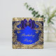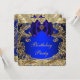 Convite de festa de aniversário azul real e dourado com redemoinhos dourados. Este convite de festa de aniversário azul real e dourado é facilmente personalizado para o seu evento, basta adicionar os detalhes do evento, estilo de fonte, tamanho e cor da fonte e texto. Por favor, note que todos os adesivos, cartões e desenhos de convite que você encontrará no Zazzle são gráficos impressos sem joias reais, laços, relevos, rebaixados ou peças ou partes adicionadas.