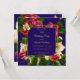 Convites Festa de aniversário azul-Rosa floral-Dourada
