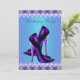 Modelo de convite de festa de aniversário de sapato de salto alto roxo leopardo roxo elegante. Este lindo convite de festa de aniversário de sapato de salto alto roxo e pérolas azul teal e lavanda funciona bem para uma festa de aniversário de sweet sixteen, convite de Quinceanera roxo, convite de aniversário de mulher roxa para qualquer idade e é facilmente personalizado para o seu evento simplesmente escolhendo o botão "Personalize!" para começar a adicionar os detalhes do seu evento, estilo de fonte, tamanho e cor da fonte e texto. Por favor, note que todos os desenhos de convite que você encontrará na Zazzle são gráficos impressos sem joias reais, laços, relevos, rebaixados ou peças ou partes adicionadas.