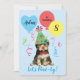 Vocês são convidados para uma pata de aniversário com este sorridente e vestido cachorrinho Yorkshire Terrier, rodeado por balões e galerias coloridos. O texto pode ser facilmente personalizado. Fornecimentos correspondentes disponíveis.
