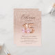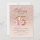 Um convite minimalista de 15 com letra rosa e caligrafia moderna.
