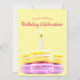 Este design de macaron rosa e amarelo pode ser personalizado para aniversários e outros. Preencha os campos do modelo com a sua informação, remova o texto ou clique em personalizar para selecionar um estilo de fonte, tamanho e cor que você preferir.