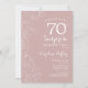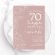 Convite de aniversário de 70 de surpresa floral rosa e branco. Elegante design moderno com sotaques botânicos e letra de script de tipografia. Simples cartão de convite floral perfeito para uma festa surpresa na moda. Pode ser personalizado para qualquer idade. Impressos convites Zazzle ou modelo de impressão digital instantânea para download.