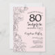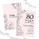 Convite de aniversário de 80 de surpresa floral rosa e branco. Elegante design moderno com sotaques botânicos e letra de script de tipografia. Simples cartão de convite floral perfeito para uma festa surpresa na moda. Pode ser personalizado para qualquer idade. Impressos convites Zazzle ou modelo de impressão digital instantânea para download.