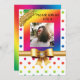 Bolinhas belas e brilhantes do arco-íris e Dourados para aniversários de mulheres ou raparigas. Este cartão maravilhoso apresenta Bolinhas clássicas com Nuggets Dourados e cores de metal arco-íris misturadas. Uma fita de ouro com uma pérola branca grande dá um toque elegante de acabamento à placa. Personalize a fotografia na placa frontal e os detalhes.