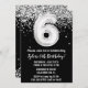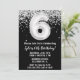 Convite de aniversário preto e branco com 6 de idade 6 convite de aniversário com brilho e moderno e escrevendo de escrita e balões de folha divertida.