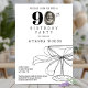 Honre noventa anos maravilhosos com uma design de festa de aniversário branca e preto refinada. Perfeito para criar memórias do eterno com elegância e estilo.