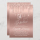 Elegante e chic 50º convite de aniversário com "50 & Fabuloso" em um roteiro de na moda bonito contra fundo de rosa dourado, com brilho fino rosa dourado a partir do topo. Você pode personalizar com o nome dela e os detalhes da festa.
