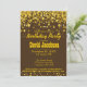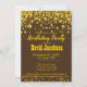 Convite moderno e bolsa mensageifesta de aniversario elegante com ouro escuro rico brilhando brilho de confete em um fundo marrom.Você pode personalizar o texto facilmente para qualquer ocasião.