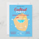 Este convite de aniversário personalizável é uma mistura deliciosa de diversão e elegância, perfeita para marcar uma celebração marcante. No coração do design está uma ilustração impressionante de coquetel, cheia de uma bebida azul tantalizante que promete uma experiência refrescante. Um guarda-chuva vermelho brincalhão e uma fatia de limão zistido engolem a bebida, simbolizando o espírito alegre de uma festividade de aniversário. O estilo gráfico do convite é contemporâneo e envolvente, com um fundo azul ousado que faz com que o texto branco e amarelo seja pop. O uso de fontes sans-serif limpas adiciona um toque de modernidade, garantindo que os detalhes se destacem e sejam facilmente legíveis.