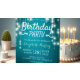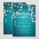 Convite de aniversário - Letra Elegante Script e Vintage String Lights com Fundo Turquesa Blue Glitter Sparkle. Um Design perfeito para o seu grande dia. Todo estilo de texto, cores, tamanhos podem ser modificados para ajustado das suas necessidades!