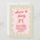 Se você está procurando por um convite único de aniversário elegante e facilmente editado, este é perfeito para você. Como vocês podem ver, ele apresenta uma escrita de mão vermelha com gritos brancos a trinta em fundo rosa. E o champanhe desenhado pela mão vermelha e os óculos de martini em modo de animação. Dentro uma moldura desenhada à mão, cor-de-rosa, e listras de aquarela verdes. Com a RSVP nas costas. Com informações inteiras que podem ser personalizadas facilmente clicando no botão personalizar. Este convite de aniversário de tendências Quirky e exclusivo também é um convite eletrônico digital se você quiser enviá-lo por e-mail ou texto. Então pegue e faça seus convites verdadeiramente engajados.