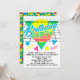 Convide amigos e convidados para a sua festa de aniversário temática de 1980 com este convite de festas geométrico dos anos 80 e oitenta para homens, mulheres, caras, raparigas ou rapazes de qualquer idade! Excelente para uma festa de adolescente, pré-adolescente, adolescente ou fantasia de dança. Celebrar todas as coisas dos anos oitenta e noventa com este legal e impressionante convite para temas, triângulos, círculos, linhas onduladas e quadrículas.