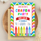 Incomode seus hóspedes com este convite de aniversário colorido com giz de cera fofinho e tipografia vibrante contra uma borda padrão de diafrão. Basta adicionar os detalhes do seu evento neste modelo fácil de usar para torná-lo um convite de tipo único.