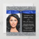 Convites de festa de aniversário com foto de diamante azul real feminino com laço e fita azul real elegante em um fundo glamoroso de diamante brilhante com espaço para sua foto. Este convite de aniversário de diamante azul real é facilmente personalizado para o seu evento, basta adicionar seus detalhes e foto.