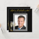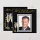 Convite de festa de aniversário com foto de homem para qualquer número em champanhe dourado e preto.