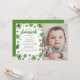 Celebre o aniversário do seu pequeno com um toque de sorte irlandesa! Convite de festa de aniversário com tema do Dia de São Patrício, cheio de amor, risadas e muita diversão inspirada em trevos. Nosso convite é seu bilhete premiado para um dia inesquecível. Com uma variedade de trevos em aquarela, uma foto e um modelo de convite moderno que é facilmente personalizável. Então reúna seus entes queridos e deixe que a sorte dos irlandeses brilhe sobre o seu pequeno.