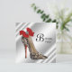 Sapato salto alto de designer elegante com laço de diamante impresso para meninas ou mulheres, modelo de convite de festa de aniversário vermelho, preto e branco. Este convite de festa de aniversário de sapato de salto alto vermelho e preto é facilmente personalizado para o seu evento, bastando escolher o botão "Personalize!" para começar a adicionar os detalhes do seu evento, estilo de fonte, tamanho e cor da fonte e texto. Por favor, note que todos os adesivos, cartões e desenhos de convites que você encontrará no Zazzle são gráficos impressos sem joias reais, laços, relevos, dourados ou peças ou partes adicionadas.