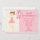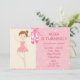Esse convite de aniversário personalizável apresenta uma pequena bailarina vestindo um tutu cor-de-rosa e um balé rosa deslizante em um plano de fundo de bolinhas cor-de-rosa e creme e texto personalizável.
